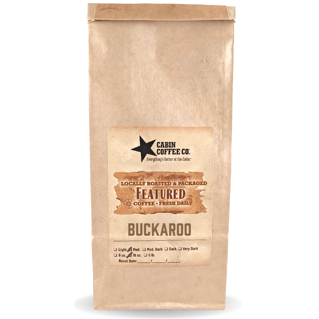 Buckaroo Blend is a smooth and sweet medium roast coffee with a mix of chocolate and blackberry undertones. Small-batch roasted after we receive your order, then packaged and shipped immediately for optimal freshness. Packaged in 1-lb. bags in your choice of grind. Also available in our single serve pods, Cabin Kups.Â